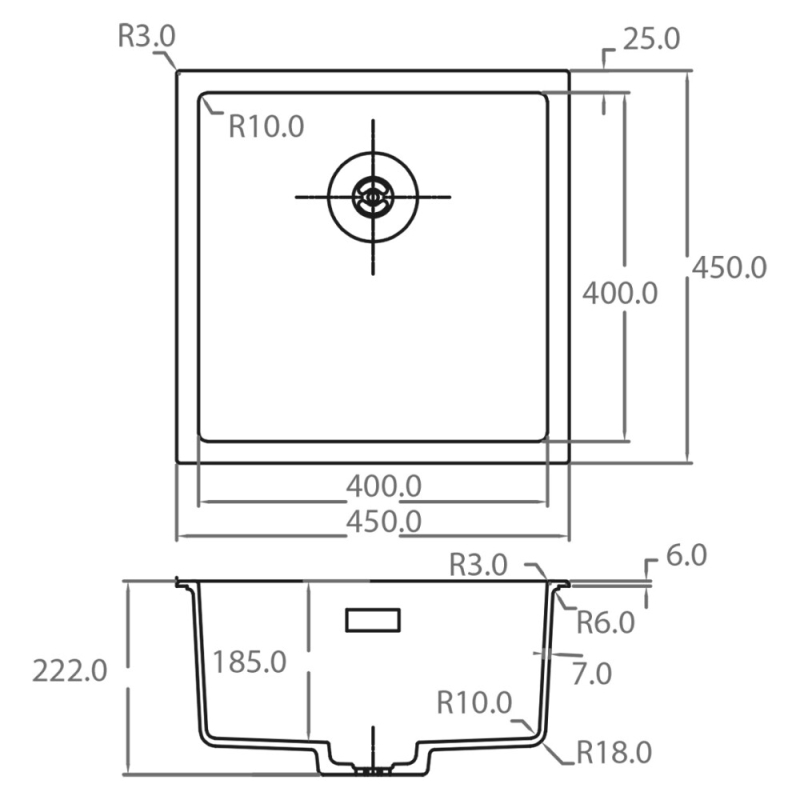• Composiet materiaal – duurzaam, onderhoudsvriendelijk en krasbestendig.
