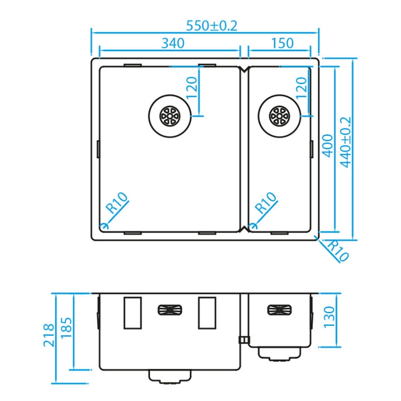 • Bakdiepte 185 + 130 mm – praktisch voor verschillende keukenwerkzaamheden.