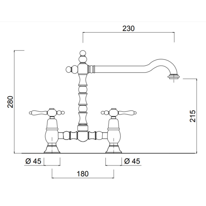 De CUCINA Praga Tweegreeps Keukenkraan is een klassieke en betrouwbare keukenkraan met tweegreepsbediening, geschikt voor 2-gats installatie. Het strakke en tijdloze ontwerp past in zowel moderne als traditionele keukens, en biedt eenvoudig controle over warm en koud water.