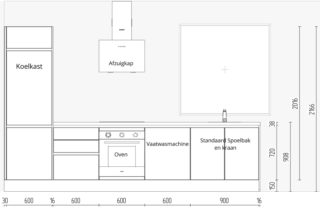 Wilt u andere afmetingen, apparatuur, kleuren of materialen? Geen probleem – wij nemen contact met u op voordat wij u de offerte toesturen om zo uw nieuwe keuken volledig naar wens te maken.