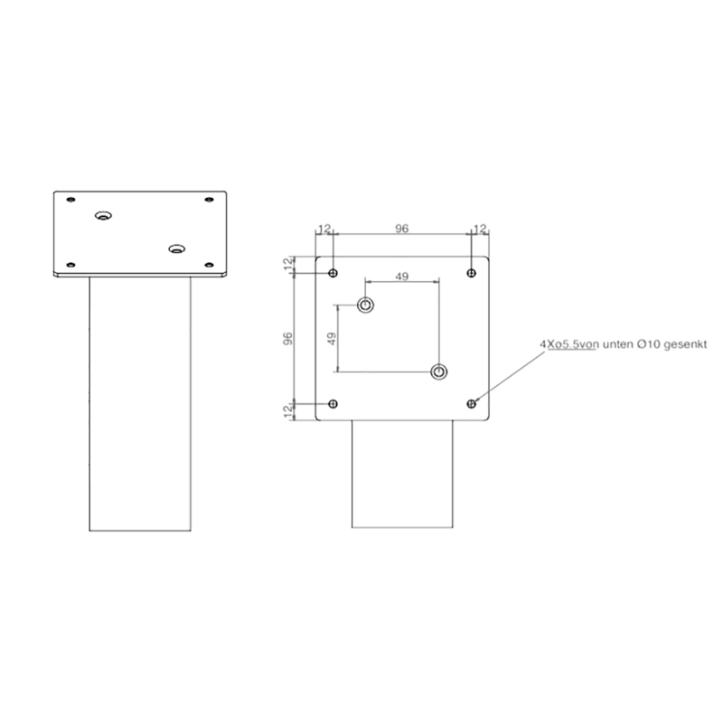 - Maat bevestigingsplaat: 120 × 120 mm