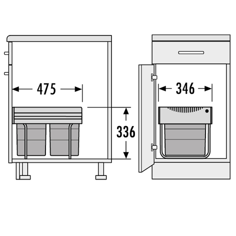 HAILO Tandem Afvalsysteem 2x18L – Inbouw Grijs
