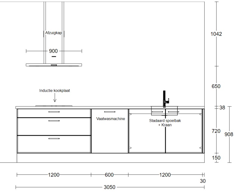Wilt u andere afmetingen, apparatuur, kleuren of materialen? Geen probleem – wij nemen contact met u op voordat wij u de offerte toesturen om zo uw nieuwe keuken volledig naar wens te maken.