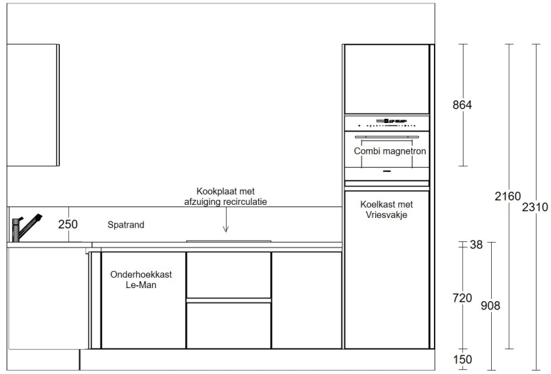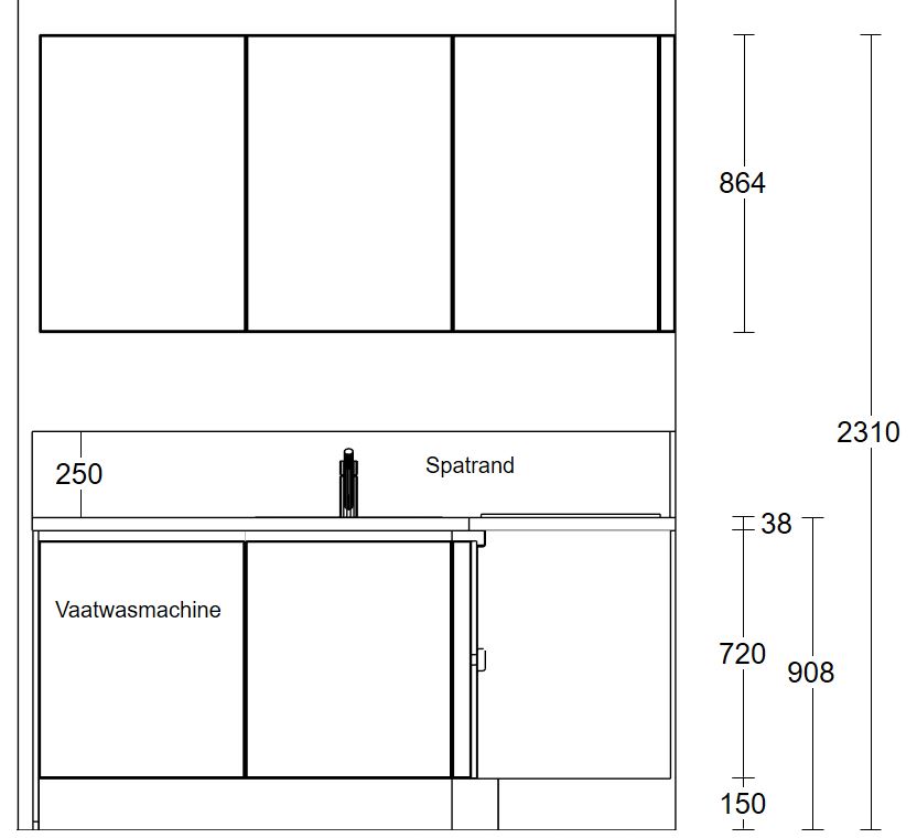 Wilt u deze keuken groter of kleiner? Geen probleem! De maatvoering kan volledig worden aangepast naar uw wensen. Afhankelijk van de gekozen afmeting berekenen wij een meer- of minderprijs.
