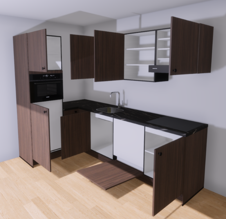 Wilt u andere afmetingen, apparatuur, kleuren of materialen? Geen probleem – wij nemen contact met u op voordat wij u de offerte toesturen om zo uw nieuwe keuken volledig naar wens te maken.
