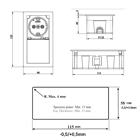 Uitsparing (Zaagmaat): 58 x 115 mm