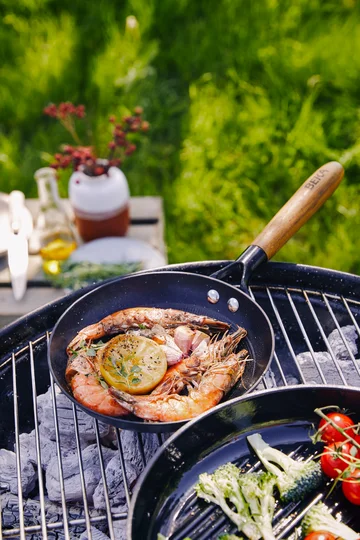 Dankzij de hoogwaardige keramische antiaanbaklaag bak je met weinig olie of boter en blijven ingrediënten minder snel plakken. De sterke geëmailleerde buitenlaag is bestand tegen hoge temperaturen, waardoor deze pan zelfs geschikt is voor gebruik op de barbecue.