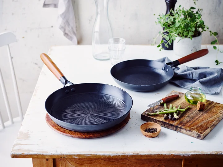 De ergonomische acaciahouten greep ligt comfortabel in de hand, blijft koel tijdens het koken en geeft de pan een warme en luxe uitstraling. Met het handige ophanggat hang je de pan eenvoudig op als decoratief én praktisch element in je keuken.