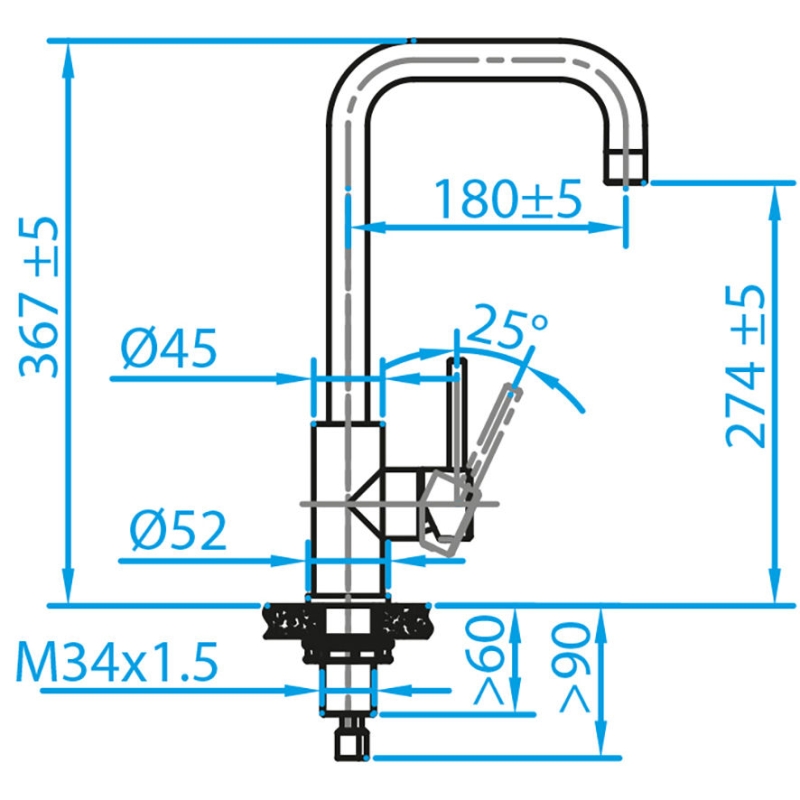 Met een kraangat van 35 mm en een uitloop van 180 mm past de kraan eenvoudig in standaard keukenopstellingen. De keramische cartouche zorgt voor een soepele en duurzame werking, terwijl de 3/8” slangen een snelle en eenvoudige installatie mogelijk maken.