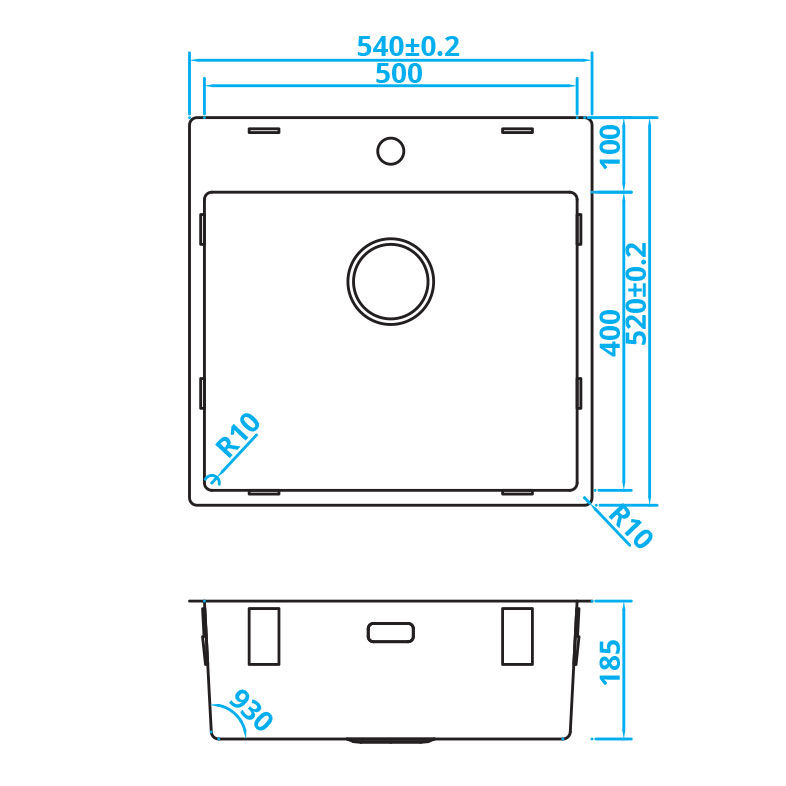Buitenafmetingen: 540 x 520 mm