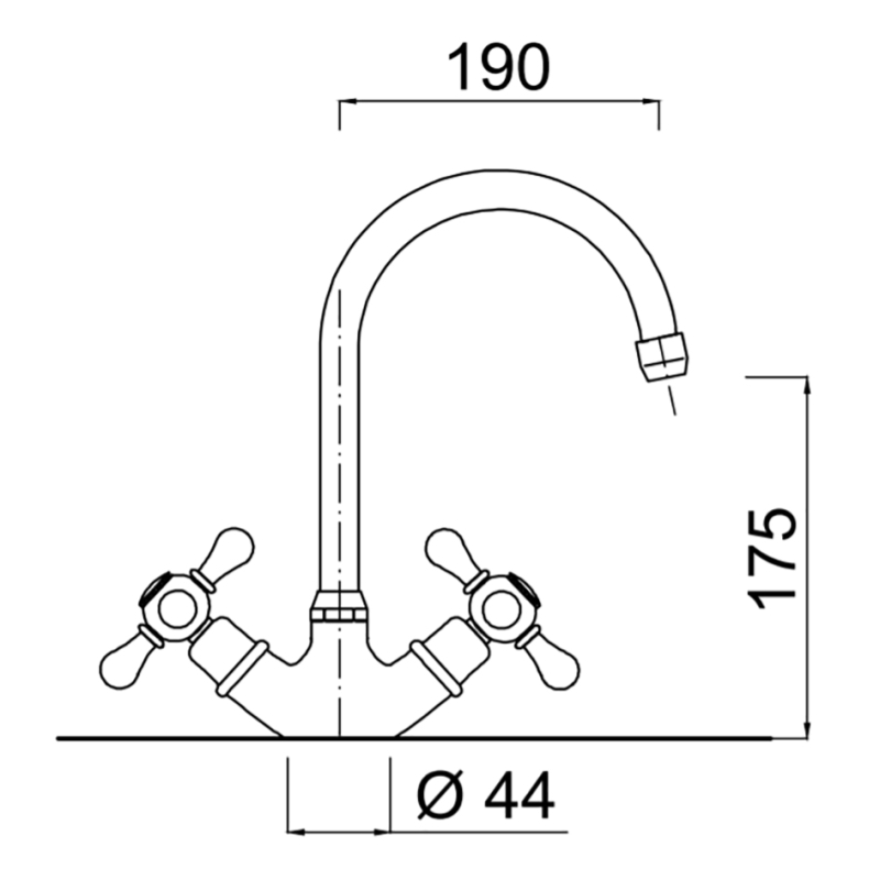 Met de twee grepen regel je warm en koud water nauwkeurig en comfortabel. De kraan is voorzien van duurzame keramische schijven, wat zorgt voor een soepele bediening en een lange levensduur zonder lekkage. De uitloop van 190 mm biedt voldoende ruimte om gemakkelijk af te wassen of grote pannen te vullen.