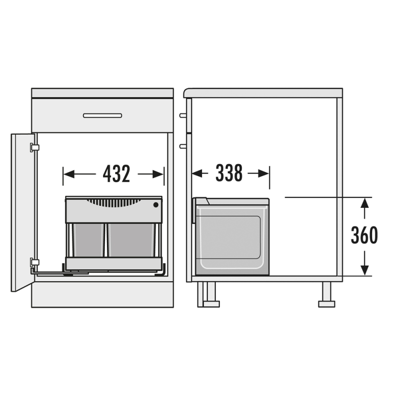 Het systeem past in kasten vanaf 60 cm breed en wordt gemonteerd op de bodem. Met afmetingen van 360 x 432 x 338 mm en een inbouwdiepte van 338 mm is het ideaal voor standaard brede keukenkasten. Zoals je van HAILO mag verwachten staat dit product garant voor Duitse kwaliteit, duurzaamheid en langdurig gebruiksgemak.