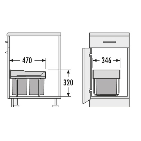 Met een totale inhoud van 2x18 liter en afmetingen van 320 x 346 x 470 mm biedt deze afvalemmer voldoende capaciteit voor gescheiden afval. De bodemmontage zorgt voor een stabiele plaatsing en houdt de emmer stevig op zijn plek. Dankzij het strakke design in zwart/grijs past hij in vrijwel elke keukenstijl.