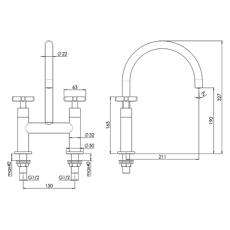 Tweegreeps bediening – eenvoudige regeling van warm en koud water.